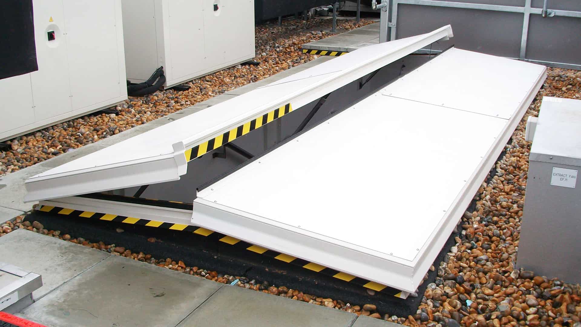 Kattokulkureittiratkaisuja suunnitellessamme me Surespanilla keskitymme laatuun, suorituskykyyn ja toimivuuteen. Täysin eristetyt kattoluukkumme ovat äärimmäisen energiatehokkaita ja IP66-luokiteltuja optimaalisen säänkestävyyden varmistamiseksi. Niiden akustinen luokka on vakiona 25 dB, mutta saatavilla on myös tehokkaampia 45 dB:n vaihtoehtoja sekä kaasujousi-, sähkö- tai hydraulitoimisia malleja koon mukaan. Paloluokitellut luukkumme on sertifioitu EN 1634-4 -standardin mukaisesti, ne ovat kaikkien eurooppalaisten normien mukaisia ja niissä on käytetty alan johtavaa lämpökatkorakennetta, joka pitää sinut ja tiimisi turvassa.