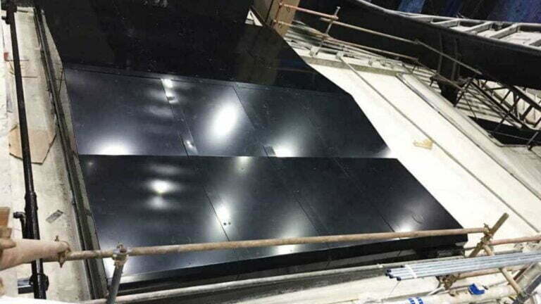 Tilanpuutteen vuoksi Ferrari Worldilla olisi saattanut olla vaikeuksia vuoristoradan vaunujen ylläpidon kanssa. Toimitimme puistoon useita erilaisia luukkuja, esim. SLHP-liukuluukun, jotta vuoristoradan vaunuja olisi helppo huoltaa. Toimitimme SLHP-liukukattoluukun, jonka rakenteellisen aukon koko on 18’3” (556,26 cm) x 13’2” (401,32 cm). Kansi on suunniteltu liukumaan leveyssuunnassa katolla olevilla liukukiskoilla, ja luukussa on 230 V hammaspyörämoottori. Kansi ja luukun avoimena pitävä tuki on täytetty 1 tuuman (2,54 cm) paksuisella CFC- ja HCFC-vapaalla polyisosyanuraattieristeellä, jonka U-arvo on 0,43 W/m2K. Luukku suunniteltiin niin, että se voitiin asentaa olemassa olevan tuen päälle.